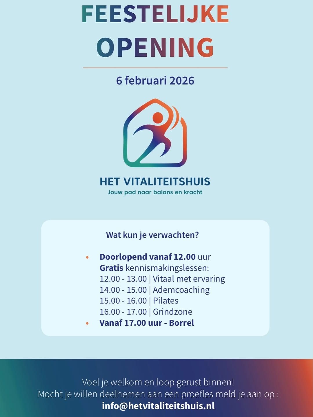 Op vrijdag 6 februari 2026 opent het Vitaliteitshuis officieel haar deuren. Iede...